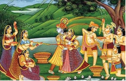 નાચે નિછોરી હસી નંદલાલ, કેસર અબીલ કુંકુમ ગુલાલ.